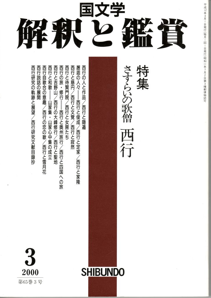 入手:国文学「解釈と鑑賞」第65巻(2000年)3号