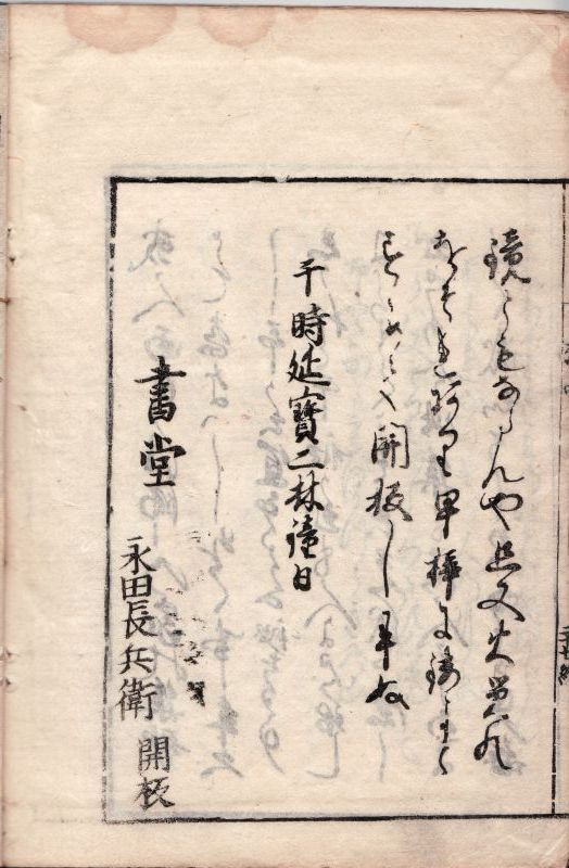 于時延寶二林鐘日 書堂 永田長兵衛開板
